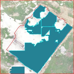 The area of interest was outlined in red, 207 structures were mapped manually for comparison. This research addresses a subsidiary question of how to efficiently delineate all structures within the Treasure Beach community (i.e., all the structures captured on the drone imagery), which is necessary to assess the risk posed to each structure by flooding. Our primary goal in this poster is to evaluate the completeness and accuracy of Artificial Intelligence / Machine Learning tools in automating the delineation of structures and report on how best to optimize those tools to maximize completeness and accuracy.